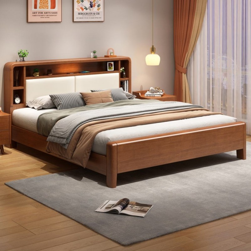 Solid Wood King Size Double Bed Simple Nordic Wabi-sabi Style with Storage Modern Bedroom Furniture Set