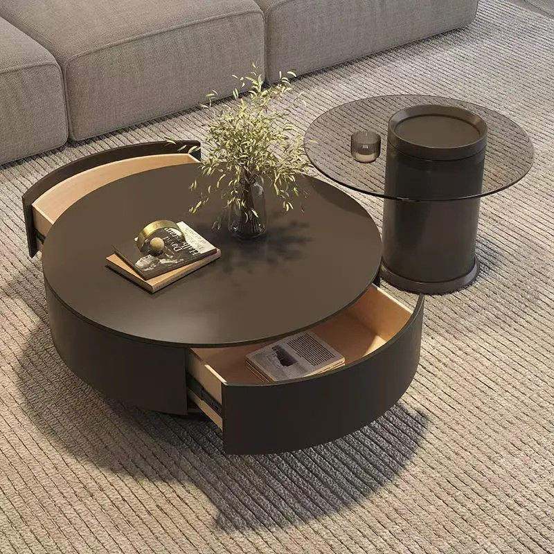 China Factory Black Modern Round Coffee Table Living Room Coffee Table Glass Coffee Table