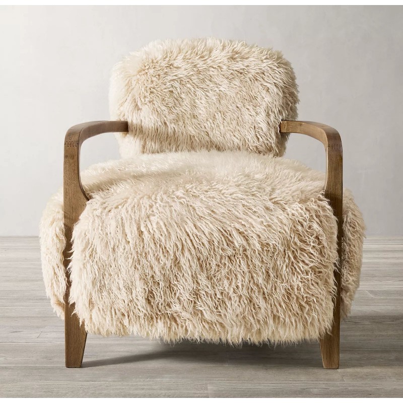 Luxury Outdoor Indoor Sofa Design Home Furniture Wooden Frame Artificial Sheepskin Lounge Chairs