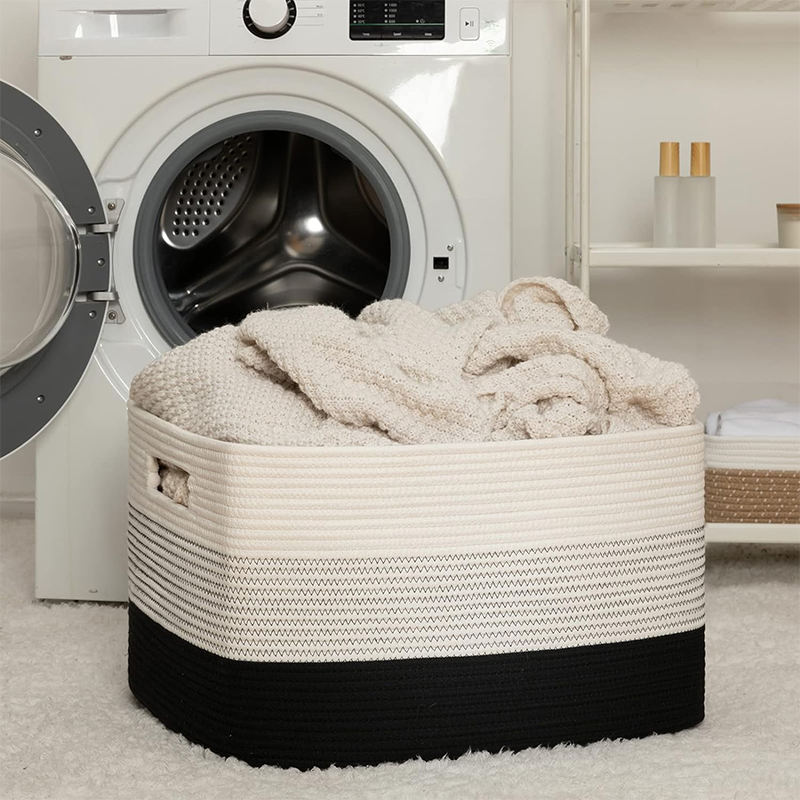 Handmade 3 Pack Toys Storage Bins Cotton Rope Woven Basket Nursery Cube Bin Cloth Storage Basket With Handles for Organizing