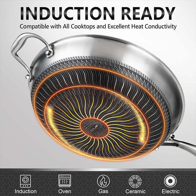 Premium Thick Bottom 316 Stainless Steel Double Sided Honeycomb Non Stick Frying Pan