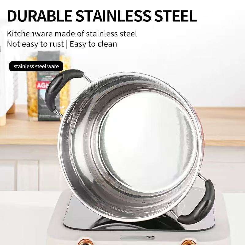 High Quality Stainless Steel Sleeve Pot 12PCS Thickened Bottom Kitchen Frying Pan Soup Pot Milk Pot Combo Set